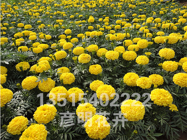 当万寿菊苗茎粗0.3厘米、株高15-20厘米、出现3-4对真叶时即可移栽。采用宽窄行种植,大行70厘米,小行50厘米,株距25厘米,每667平方米留苗4500株,按大小苗分行栽植。采用地膜覆盖,以提高地温,促进花提早成熟。移栽后要大水漫灌,促使早缓苗、早生根。